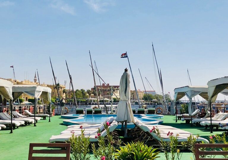 To relax after indulging in our delectable dishes, go to the sun deck, where we offer the latest and greatest drinks. You can burn off those extra calories and get back in shape by working out in our air-conditioned gym, which provides direct access to the sun patio and pool area. Several millennia of time travel will take you to ancient Egypt, where you may learn about the legacy of the fabled Pharaohs. When you return, the M/S Nile Dolphin will welcome you with all the modern conveniences of the 21st century.
