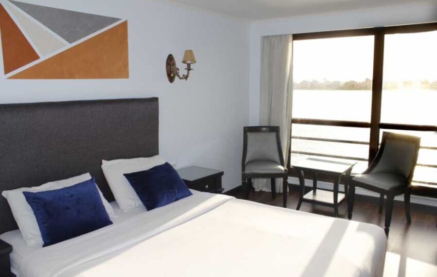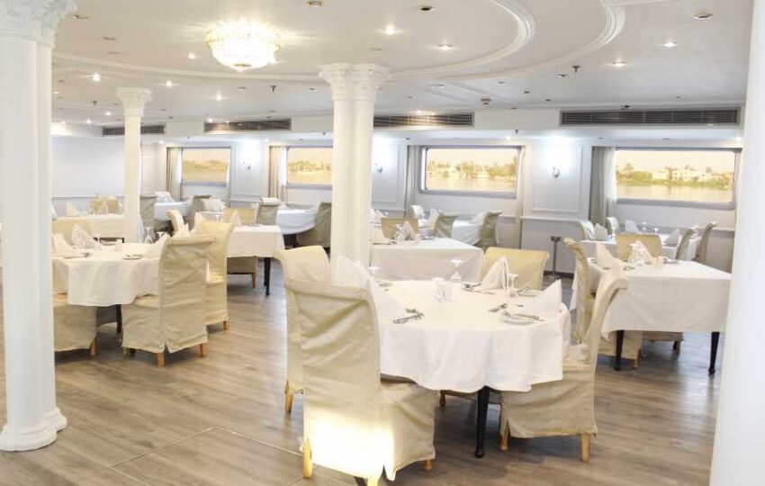 Although the M/S Nile Dolphin is adorned in a French Empire style, the level of detail has been toned down to appeal to modern tastes. There are 63 deluxe double rooms and 2 suites available on the hotel's floating deck, as well as a restaurant, bars, a quiet area' with a panorama terrace next to the lounge, a pool, a Jacuzzi, a bar, a business center with internet access, a shop, and a gift shop. Visitors may stay in the M/S Nile Dolphin's magnificent accommodations, whether on a business trip or a vacation.