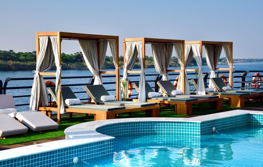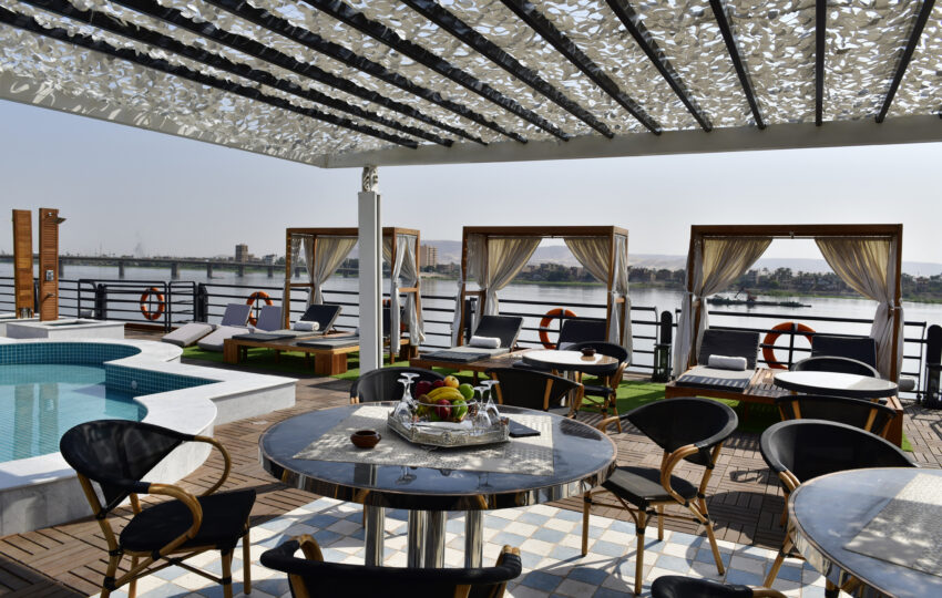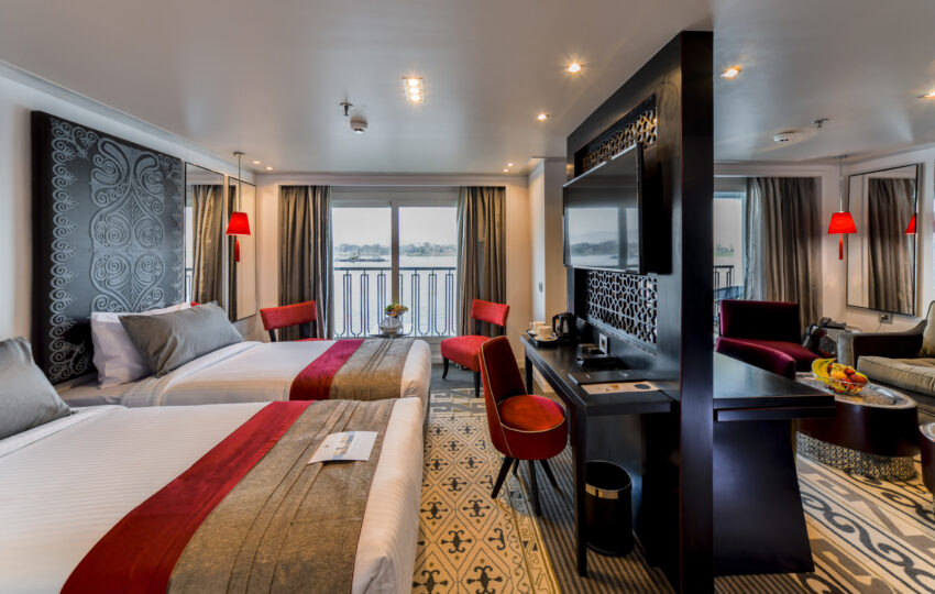 During their trip down the Nile, passengers on the MS Mayflower Nile Cruise can choose from 54 staterooms, including 18 suites and 8 executive cabins. Standard free cabin amenities include a bathroom with a bathtub, shower, toilet, single-sink vanity, and hairdryer, a flat TV with satellite reception, an international direct-dial phone, an electronic safe box (located in the closet), a mini-fridge, a coffee maker, Internet access, and individual air conditioning. Aside from that, each cabin has its own Internet connection. Most of the time, two people are the most that can be in a room at once. Also, the minibars in the Royal Suites, Presidential Suites, and Executive cabins are stocked with free soft drinks every day. Also, soft drinks and alcoholic drinks are free in these cabin categories (served in the Bar Lounge). Executive and Deluxe cabins come with verandas as a standard feature. Both types of cabins also have queen beds.