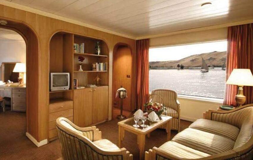 Regina Nile Cruise is known for its services, friendly and warm atmosphere, and view of the Nile. The crew is kind and works hard to make sure our guests are happy. The lobby and bar are decorated with elegant and modern furniture that is easy to look at. You can enjoy a wide range of food and drinks, sun by the pool to relax, and shows and discotheques at night.